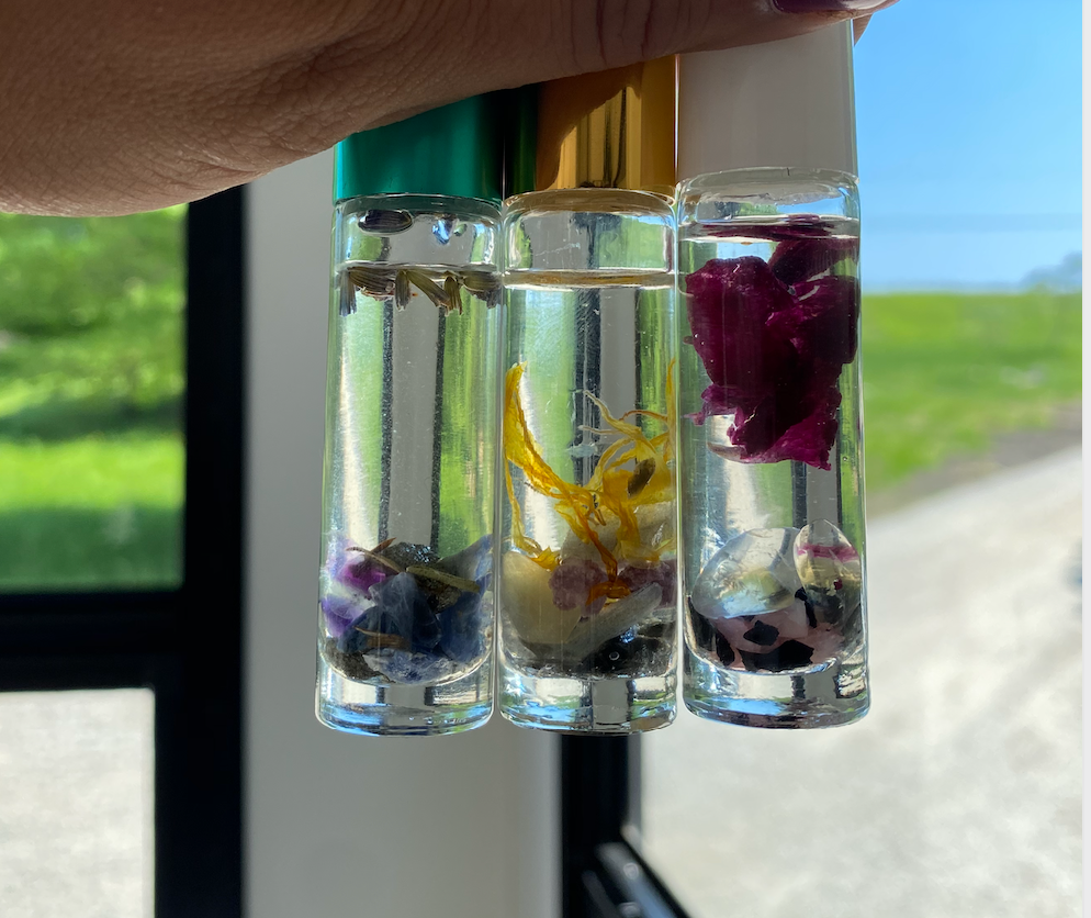 When I do create a roller for you, I create a sacred space. To make your potion I connect with your energy, I connect with your guides, then let my intuition show me what you need and how to support you. I gather materials and add them with intention. These rollers are often filled with crystals, herbs, essential oils, flower essences, and a carrier oil. 🔮
