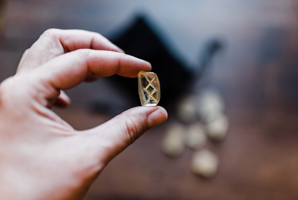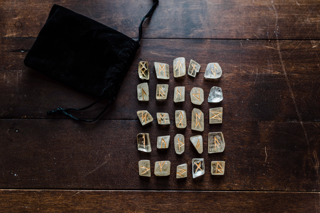 Each rune set comes with a set of 25 runic symbols on crystals in a black velvet bag.